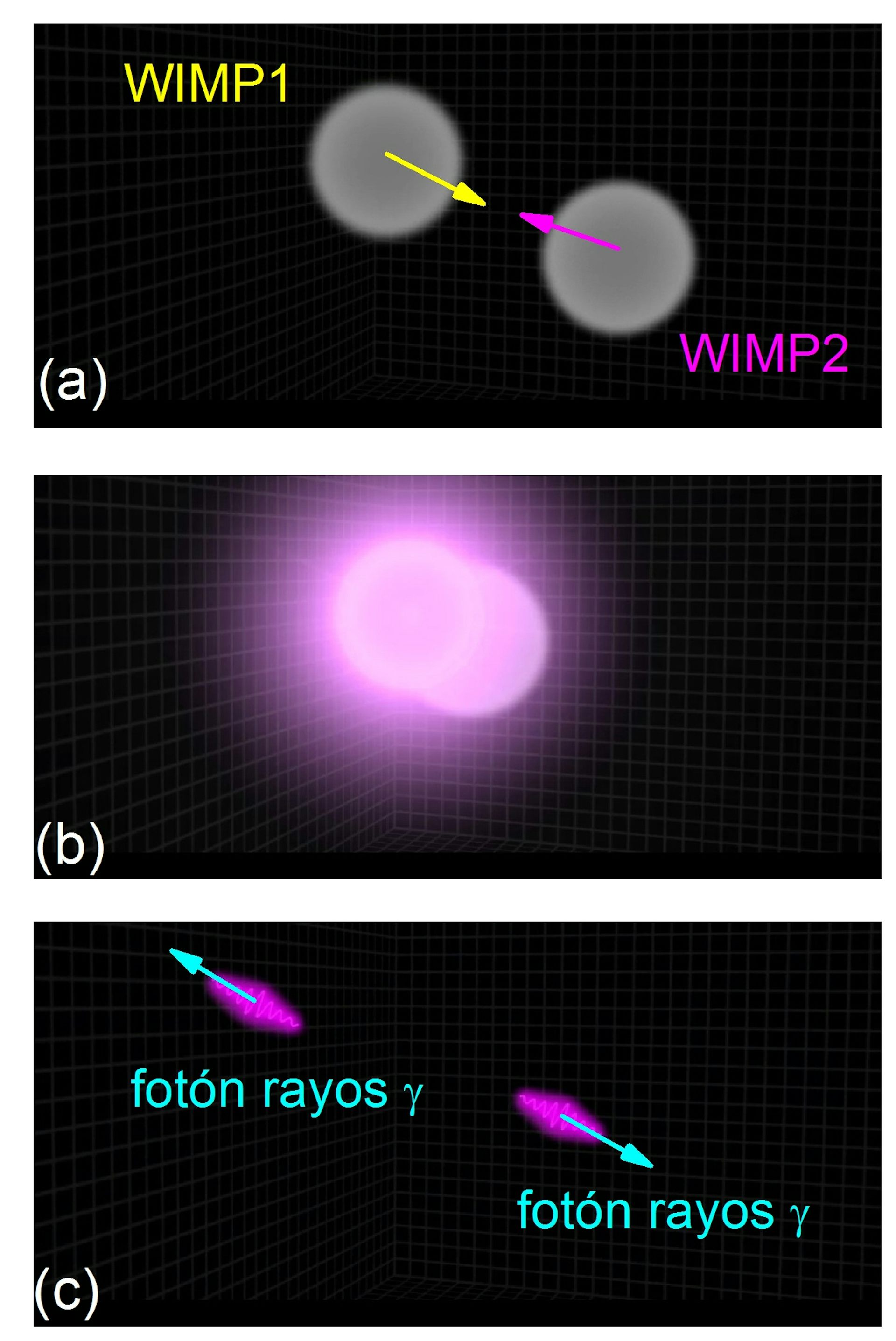 Así, un exceso de radiación gamma altamente energética en determinadas regiones galácticas tendría su origen en las aniquilaciones de partículas de materia oscura, y podrían ser prueba de la existencia de WIMPs. Lo discutible es si la prueba es concluyente o estamos ante una hipótesis especulativa.