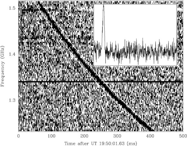 Este comportamiento es notablemente similar al de los pulsos de un púlsar, excepto que, por alguna razón aún desconocida, los ahora descubiertos son millones de veces mas intensos.