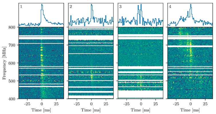 Es la naturaleza aleatoria de la gran mayoría de esas ráfagas de radio y su corta duración lo que las hace extremadamente difíciles de detectar y estudiar. A excepción de los pocos FRB repetitivos, es imposible predecir cuándo y en qué lugar del cielo aparecerá el siguiente centelleo.