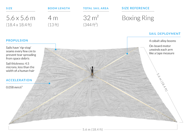 Una nave equipada con velas solares incorpora una estructura de un material ligero y fino que forma la vela, como el LightSail 2. Gracias al impacto de los fotones sobre la vela, se consigue un empuje en dirección contraria al Sol. Según el ángulo de incidencia de la luz solar sobre la vela es posible acelerar o frenar la nave. Esto nos permite alcanzar distintos puntos del sistema solar. LightSail 2 ha conseguido orbitar un pequeño satélite alrededor de la Tierra utilizando su vela solar de 5,6 x 5,6 metros y el impulso de la luz solar. Nada de combustible, LightSail 2 navega por el espacio tan sólo con los rayos del Sol.