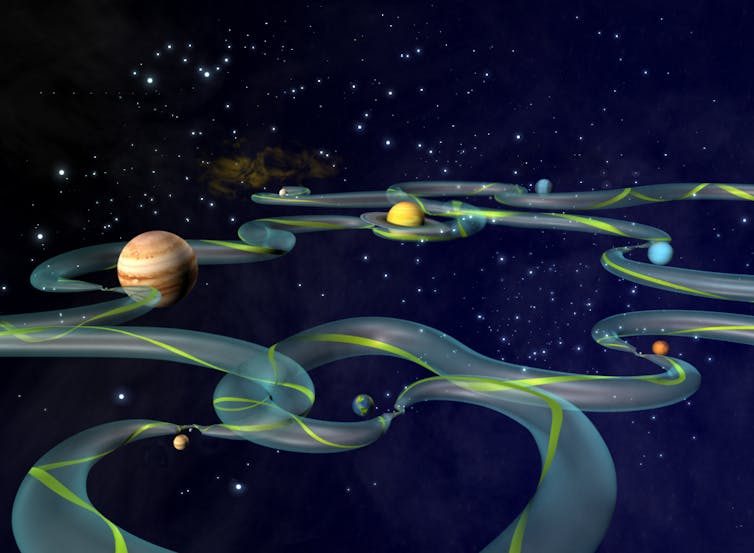 Se trata de objetos que, de forma parecida al viento, generan una corriente por el espacio. Así pues, para viajar a la Luna, podemos usar una de estas corrientes asociadas al Sol y, llegados a un punto concreto, cambiar de corriente con un pequeño impulso para llegar a nuestro destino. A diferencia de un viaje directo, que suele alcanzar la Luna en 3 o 4 días, las autopistas interplanetarias implican viajes de entre 3 y 4 meses, pero significan un importante ahorro energético.