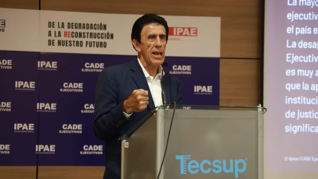Gonzalo Galdos, presidente de IPAE Acción Empresarial, brindó un mensaje en la clausura de CADE Ejecutivos 2024, en el que se refirió a la ausencia de ambas figuras del Ejecutivo.
