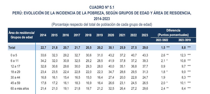 La pobreza alcanzó a 3 millones 062 mil 521 peruanos de 0 a 17 años, el 2023, según datos del Instituto Nacional de Estadística e Informática (INEI). Los más afectados son los de 0 a 6 años, quienes son golpeados por este problema en un índice de 4 por cada 10.