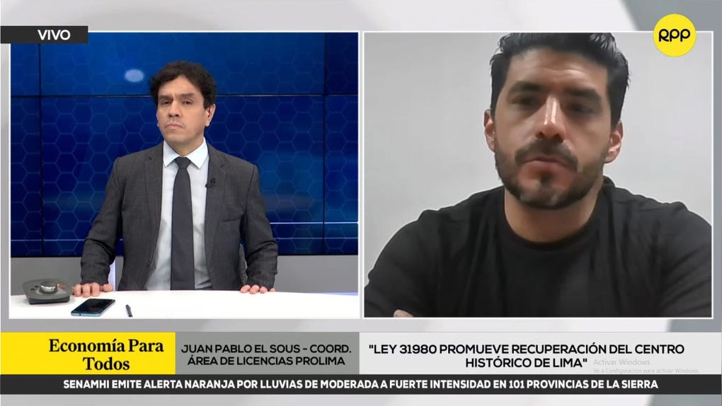 Ante el pedido de los comerciantes de Mesa Redonda, de derogar la Ley 31980, Juan Pablo El Sous, coordinador del área de licencias de Prolima, se presentó en Economía Para Todos por RPP y apuntó que esa no es la finalidad de la norma.