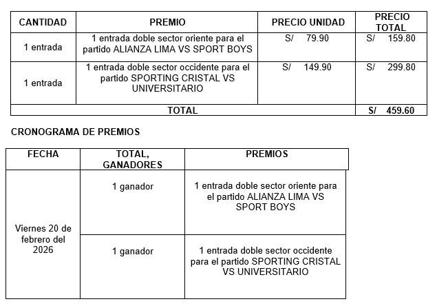 GANA 1 ENTRADA DOBLE ORIENTE PARA EL PARTIDO AL VS SPORT BOYS Y UNA ENTRADA DOBLE OCCIDENTE PARA EL PARTIDO SPORTING CRISTAL VS UNIVERSITARIO