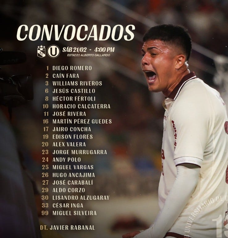 Convocados de Universitario ante Sporting Cristal