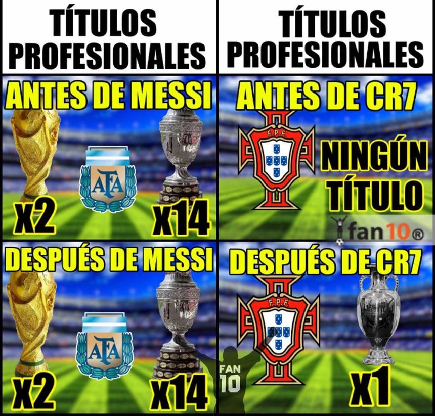 Los hinchas aprovecharon la ocasión para crear divertidos memes por el mal momento de la Selección Argentina y compararon las diferentes personalidades de Cristiano Ronaldo y Lionel Messi.
