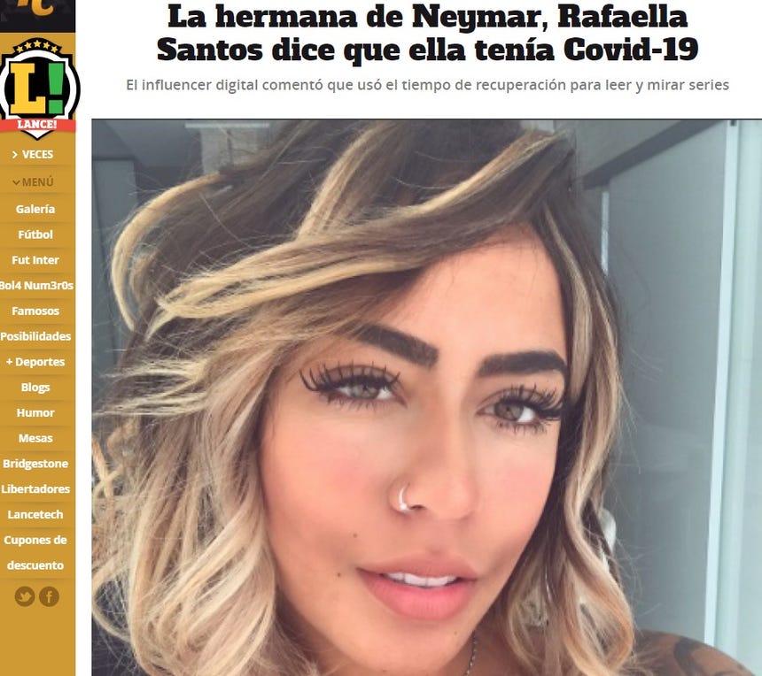 La prensa brasileña ahora especual que Rafaella podría haber contagiado al delantero de Flamengo Gabriel Barbosa, con quien tuvo un romance en los últimos años. Incluso se señala que el popular 'Gabigol' ya estaría viviendo con la hermana de 'Ney' en una de sus propiedades en Río de Janeiro.