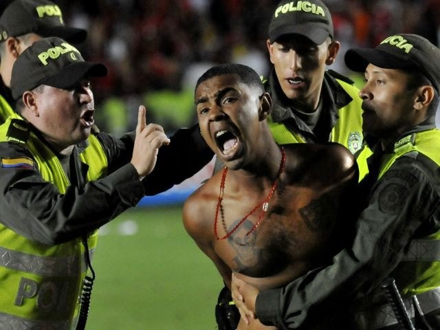 Un total de 15 heridos y 62 detenidos dejaron los disturbios que se presentaron la noche del sábado tras la serie en la que el América de Cali perdió contra el Patriotas de Boyacá, lo que provocó el descenso del primero a la Segunda División colombiana.