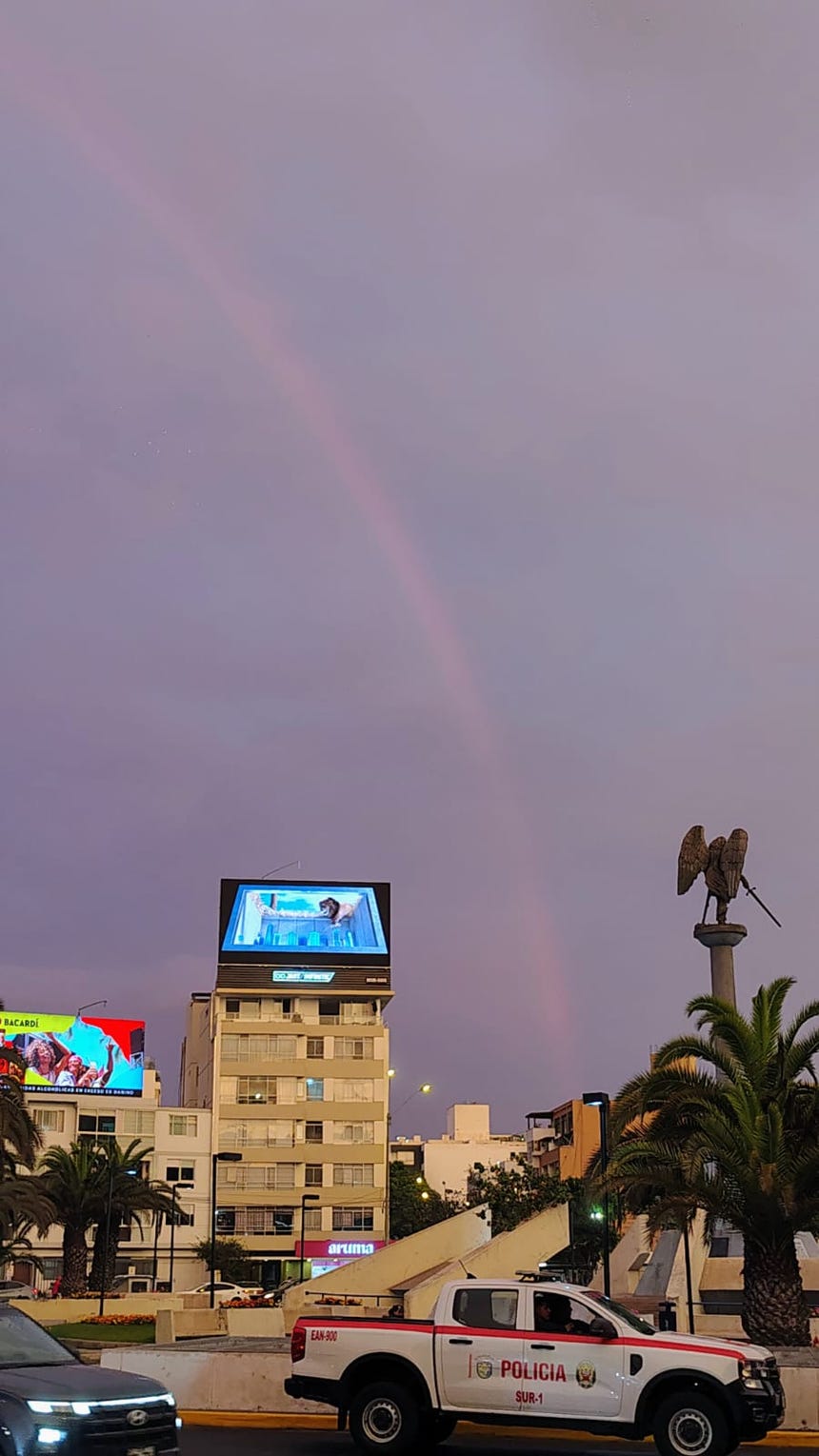 Un inusual arcoíris apareció la tarde de este miércoles en el cielo de Lima, sorprendiendo a cientos de ciudadanos que no tardaron en compartir imágenes y videos del fenómeno en redes sociales.