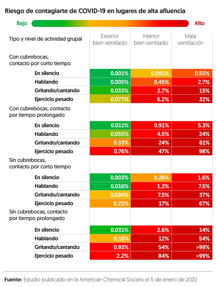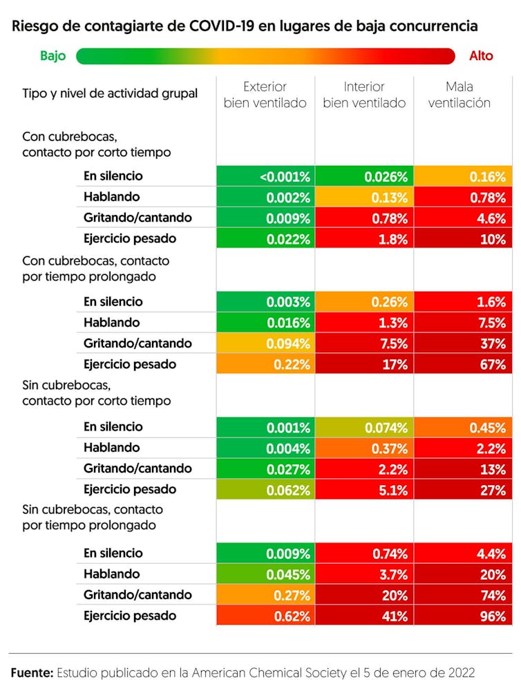Una forma de facilitar el contagio de covid es hacer varias de las cosas que aparecen en las celdas rojas de la tabla, como por ejemplo: