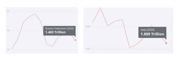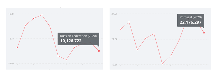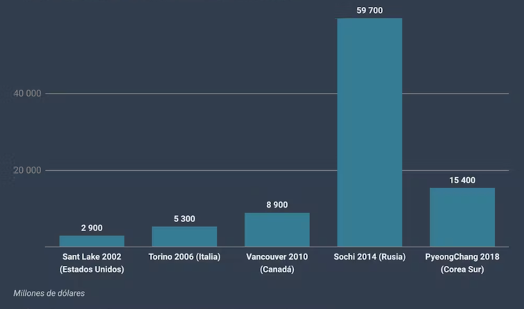 Por otra parte, y a pesar de los efectos en su economía de la crisis de 2008, Rusia destinó la década pasada enormes cantidades de dinero a la organización de dos grandes eventos deportivos: el Mundial de Fútbol de 2018, que tuvo un coste de 15 000 millones de dólares, y los Juegos Olímpicos de invierno de 2014 que costaron unos 50 000 millones.