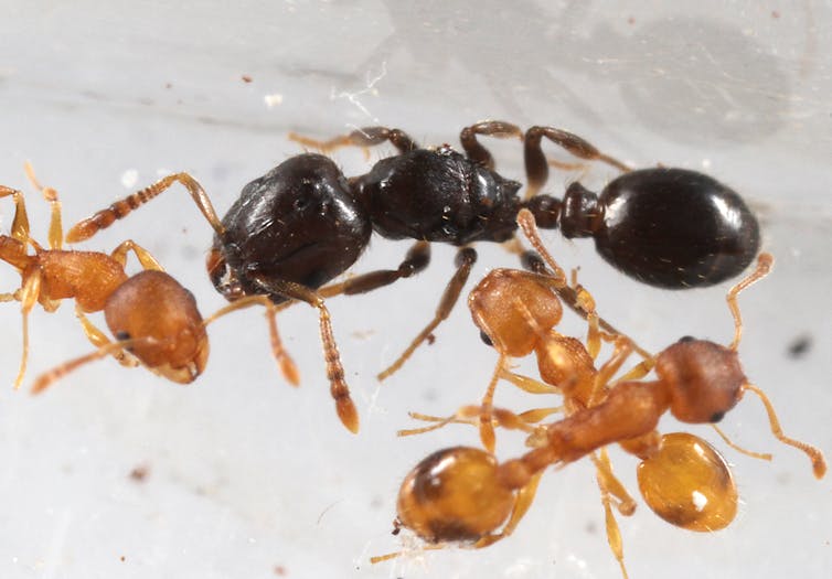 Por eso, tiene especial interés el hecho de que las obreras de hormigas esclavistas sean capaces de reproducirse. Podría decirse que han recuperado ese rasgo, lo que se atribuye a la pérdida de la capacidad para percibir y responder a las feromonas de la hormiga reina que inhiben la actividad reproductora.