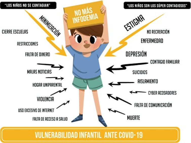 El virus SARS COV-2 y la infodemia obligaron a los niños al gran reto de adaptarse a estas nuevas condiciones que se impusieron de forma brusca y sin aviso, convirtiendo su entorno en un caos. Por lo tanto, la elaboración de acciones específicas es vital para consolidar un sistema comunicativo eficaz y justo que permita combatir la infodemia, incluyendo urgentemente a los niños como grupo primario de atención. Brindarles acompañamiento emocional y mental para vivir esta nueva normalidad es tarea de todos, desde la cotidianidad hasta los entornos escolares y sanitarios, lo cual evitaría una crisis postcovid que venga con más fuerza contra esta población. ¡Es hora de actuar en favor de sus derechos!