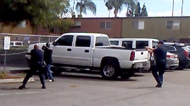 Los policías habían acudido al lugar después de recibir diversas llamadas alertando de la presencia de un hombre con un "comportamiento errático", añadió el teniente Rob Ransweiler. La Policía de El Cajón difundió a través de su cuenta de Twitter una fotografía del momento en el que el afroamericano apuntó con sus manos a uno de los agentes, una imagen en la que no se distingue el objeto que sostiene. La fotografía fue extraída de un vídeo que las autoridades no pretenden difundir, al menos hasta que lo revise un fiscal.