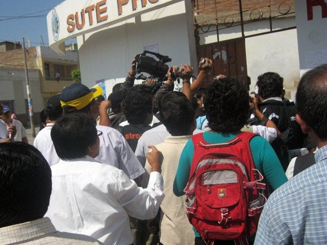 Cientos de maestros rodean la comisaría de Pucallpa para exigir la liberación de su dirigente. Asimismo, denuncian que algunos mandos policiales vienen cometiendo excesos durante sus movilizaciones.