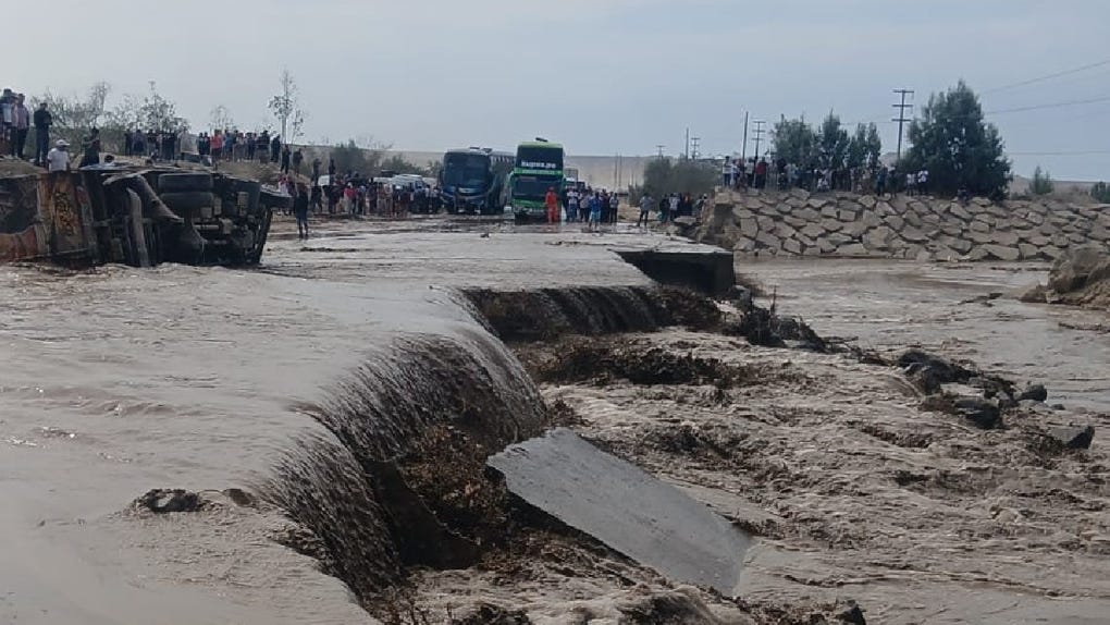 "[Está] colapsada totalmente, kilómetro 337, no hay pase vehicular. Está colapsada, la capa freática está por caerse, le acabo de enviar el video y le acabo de enviar las fotos, donde también está un tráiler atravesado, está SOS. [Solicito] la declaratoria de emergencia para mi distrito, porque el río de atraviesa todo el Valle de Ocucaje, está quebrándose por todos los lados y está perjudicando los campos de cultivos", contó una ciudadana", expresó.
