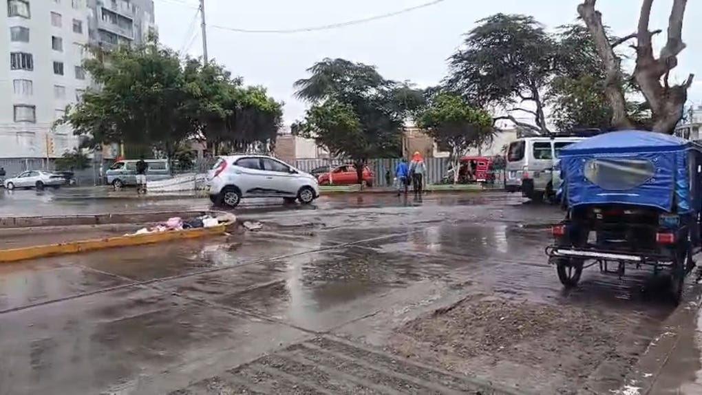 El distrito de Motupe, en la región Lambayeque, se quedó sin energía eléctrica luego de la intensa lluvia que cayó en las últimas horas y que dejó anegadas varias calles de la localidad. La fuerte precipitación originó que se acumule agua que llegaba hasta casi las rodillas de los pobladores.