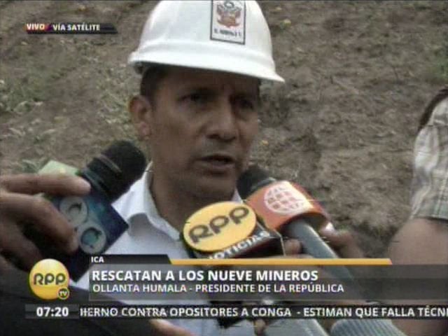 Minutos después de concretarse el rescate de las nueve personas atrapadas en la mina Cabeza de Negro, en Ica, el presidente de la República, Ollanta Humala, invocó a los mineros a formalizarse.