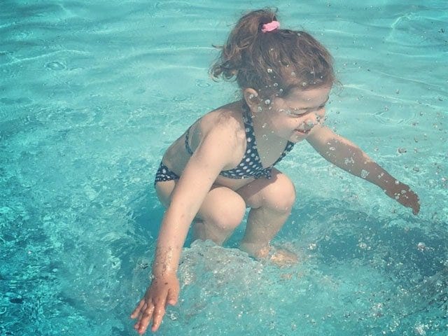 Se trata de la imagen de una niña en una piscina, cuya discusión se centra en si esta pequeña se encuentra nadando debajo del agua o recién está por sumergirse.